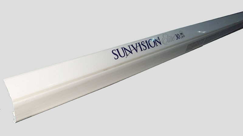 Plastic profile that secures the acrylic on a 7' tanning bed. Screened with tanning bed logo and warning wording required by the FDA for tanning beds.