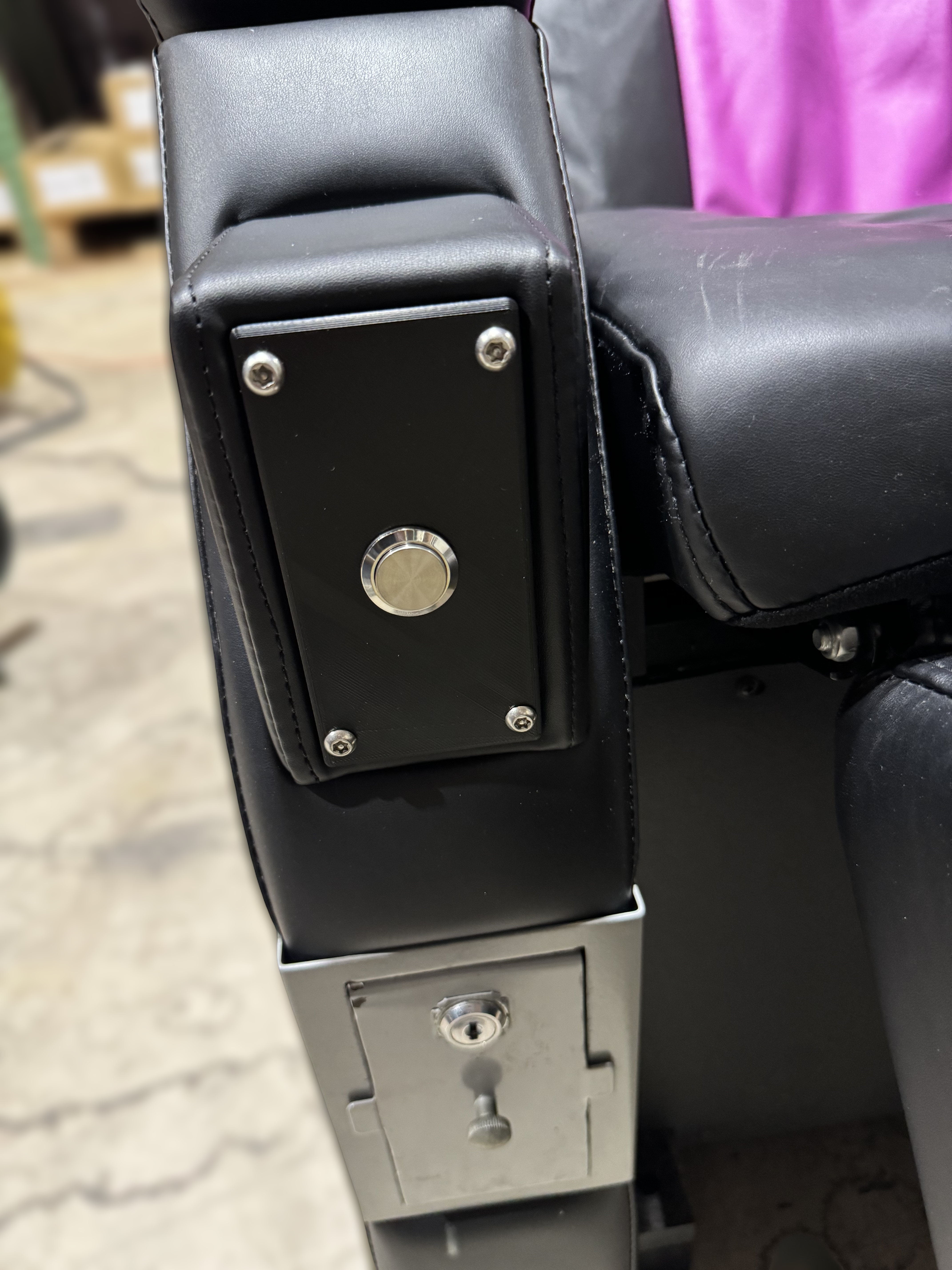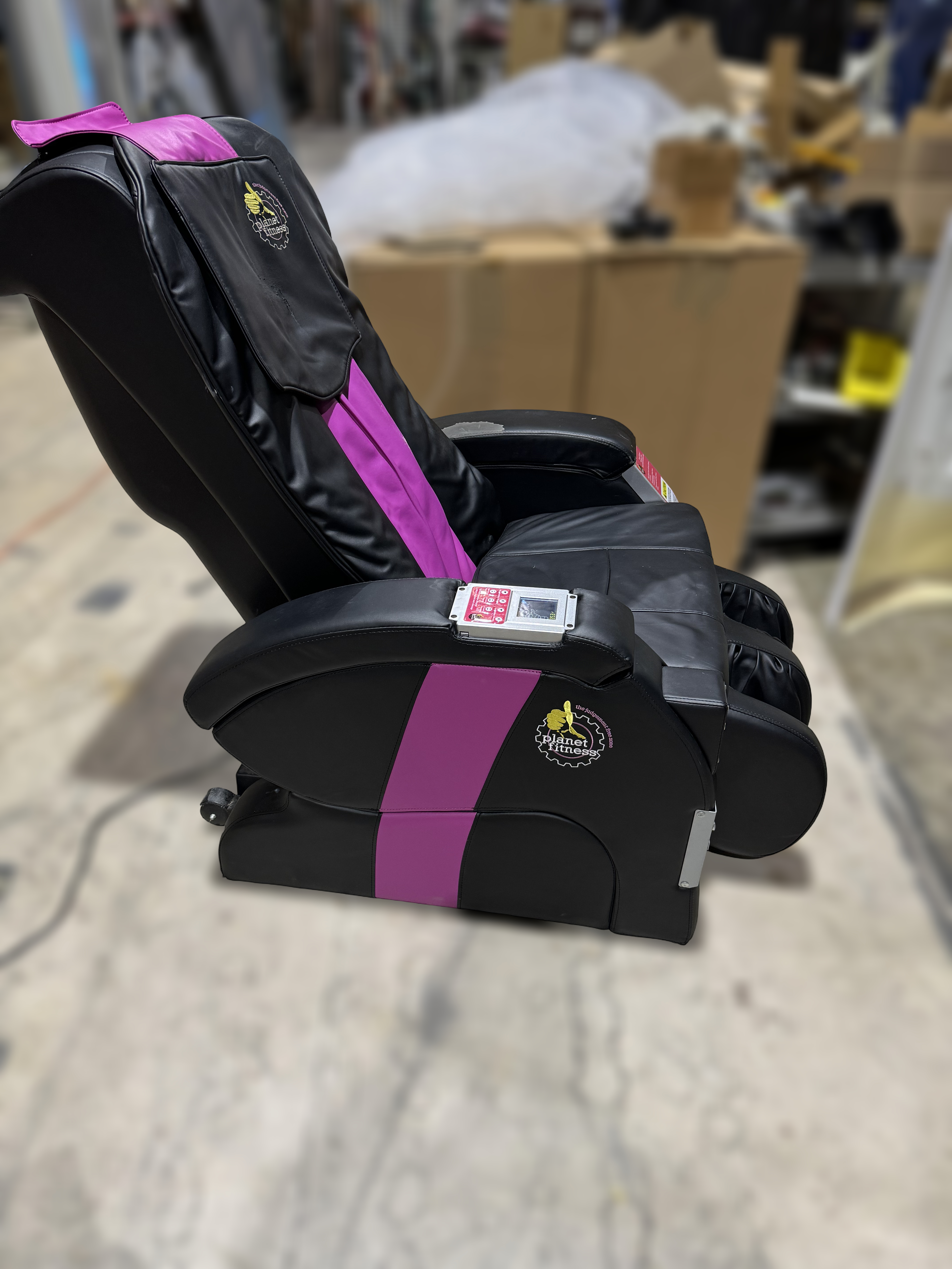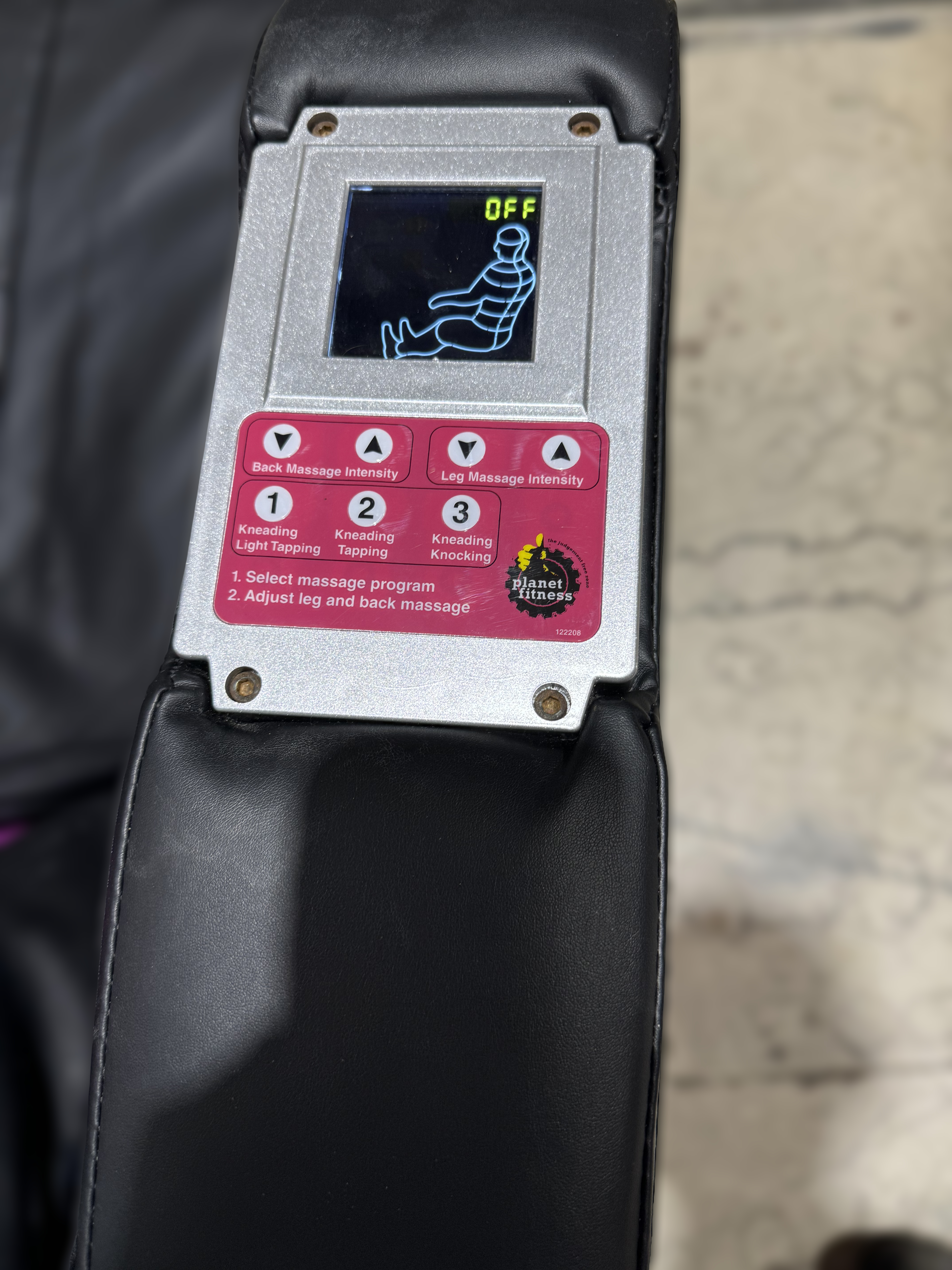 These chairs have been decommissioned from Planet Fitness gyms and converted from coin-based operation to pushbutton operation. They have normal wear and tear but are fully functional. NOTE: These cannot be used in a commercial environment due to the permanent Planet Fitness branding, they are intended for residential use only.